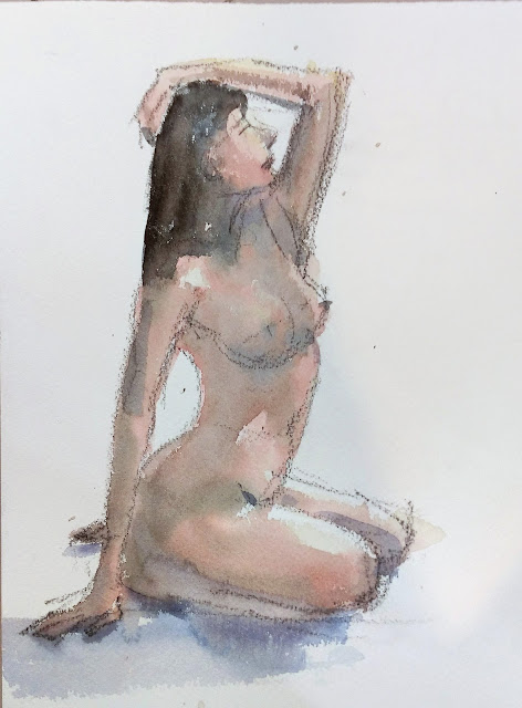 今天在技法上採用局部渲染和紙上調色的濕畫技法,中間對比較大部份直接乾畫。飛機起飛角度最難,非常不好拿捏,先在紙上畫小稿,再依比例放進畫面中。